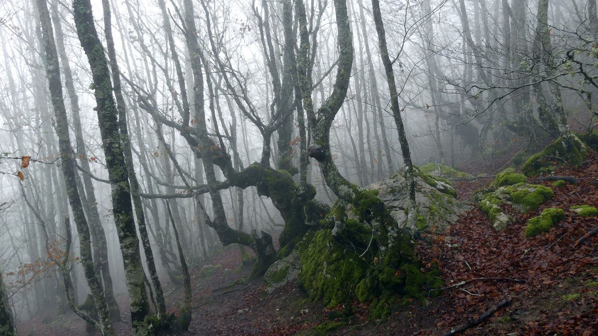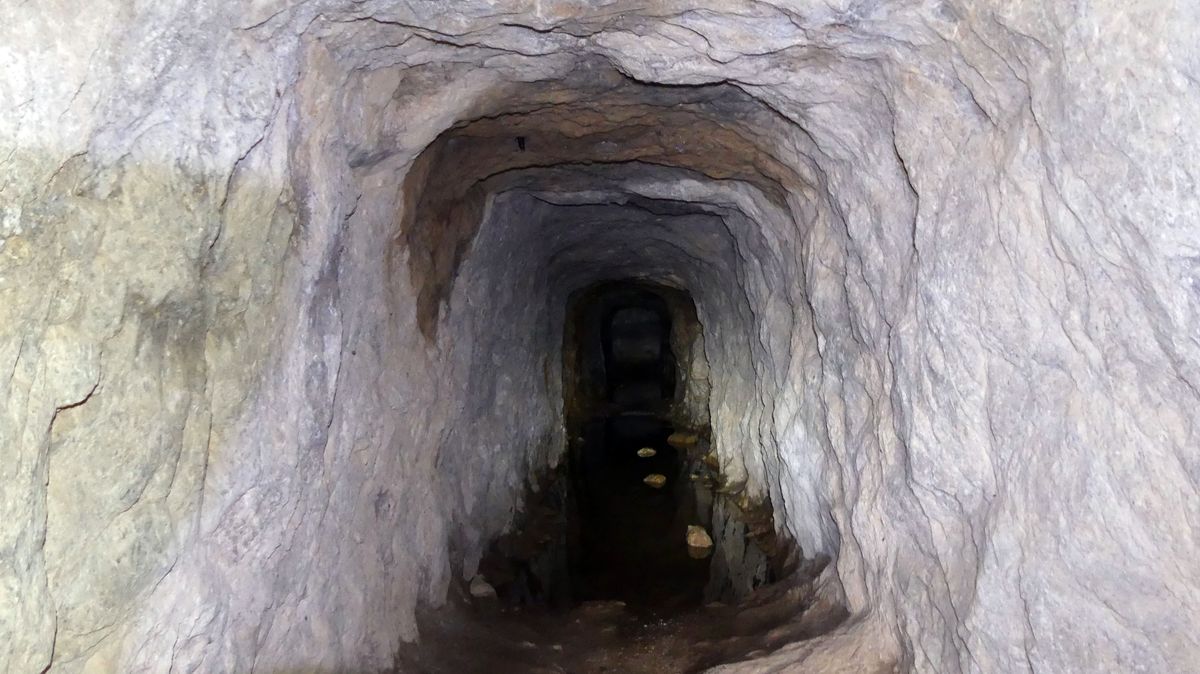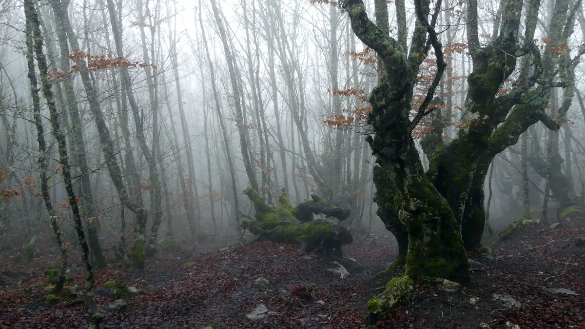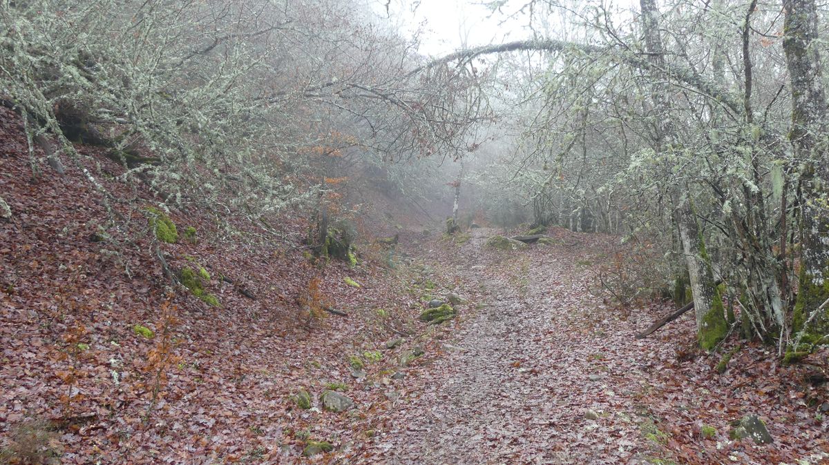 Decidimos bajar por el hayedo a visitar la cueva de la vieja del Monte, una vieja mina que han preparado para visitarla, aunque estaba llena de agua y no pudimos recorrerla.