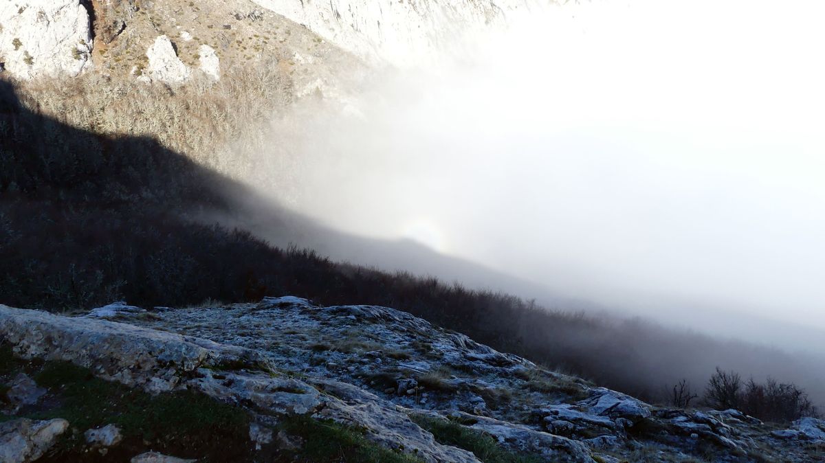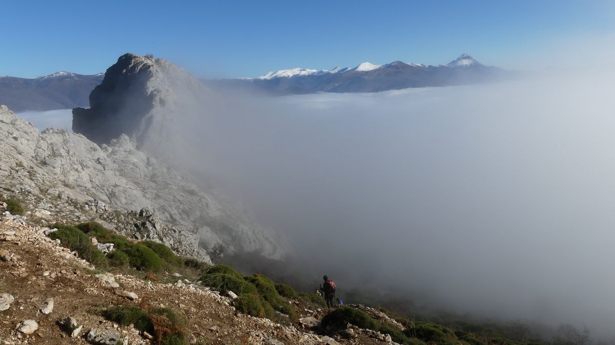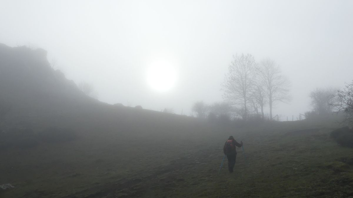 Con previsiones de cielos despejados, salimos hacia Riaño. La idea seguir la subida al Gilbo para llegar a la cresta desde donde ver el embalse, pero la niebla nos dijo que no.