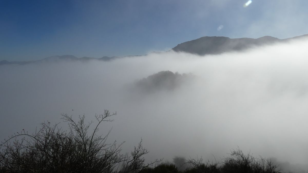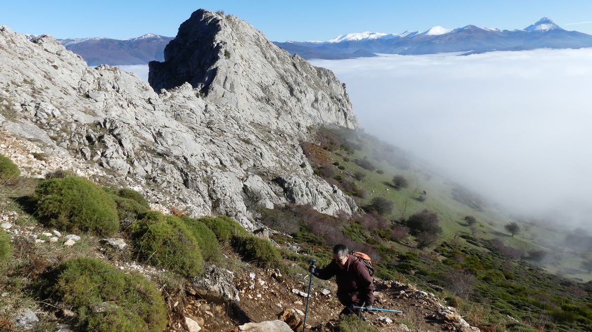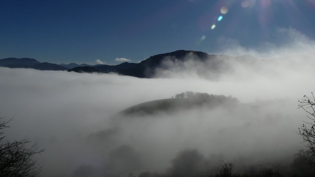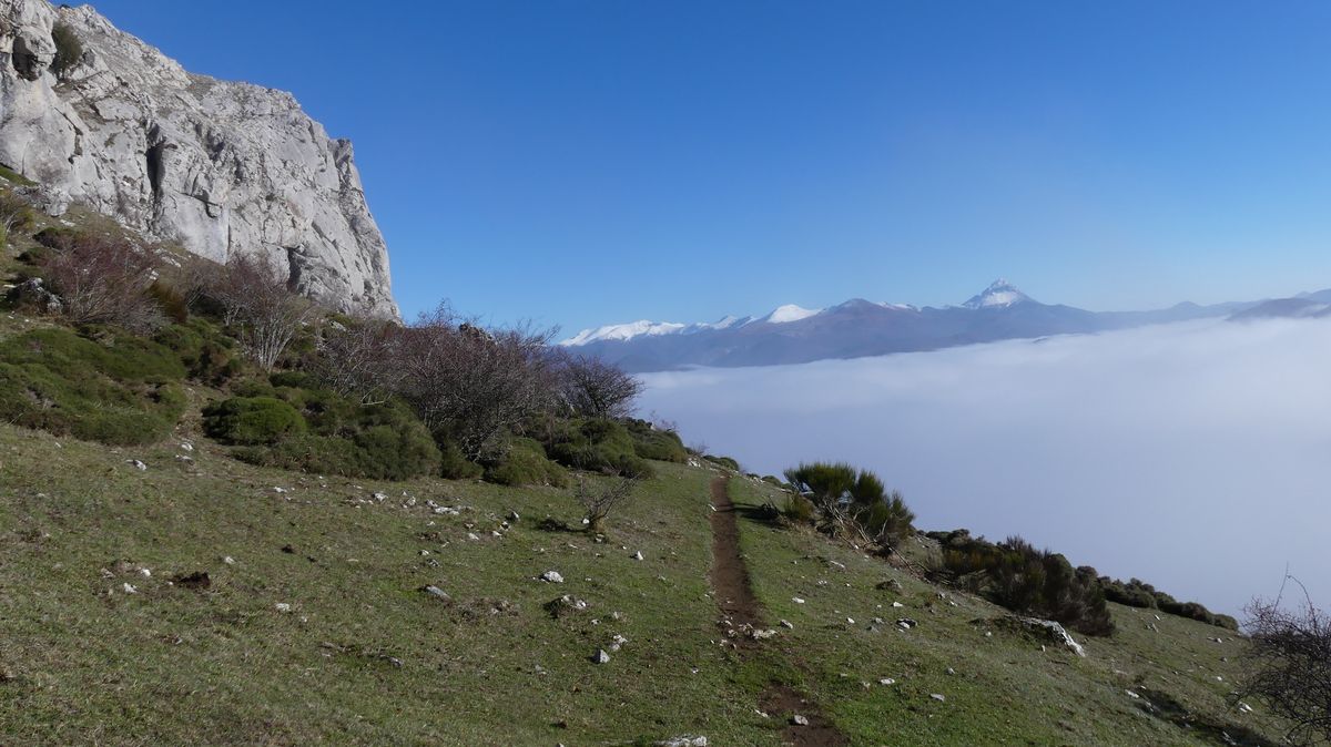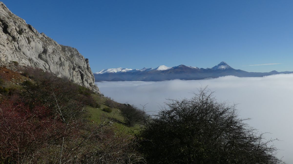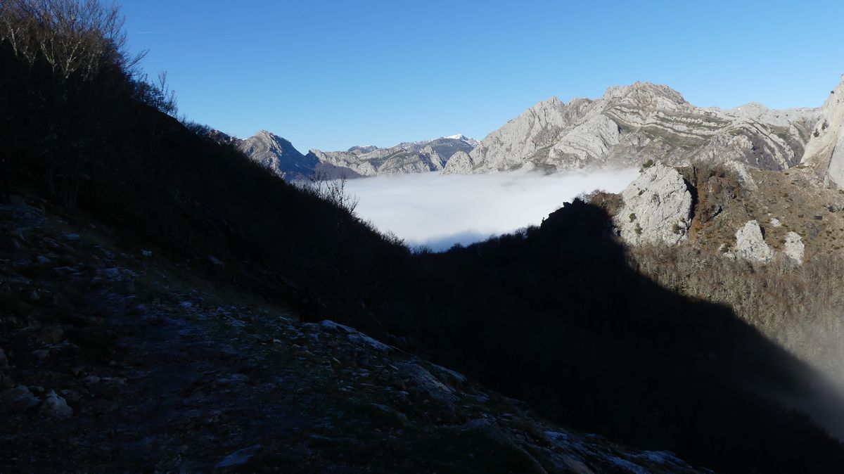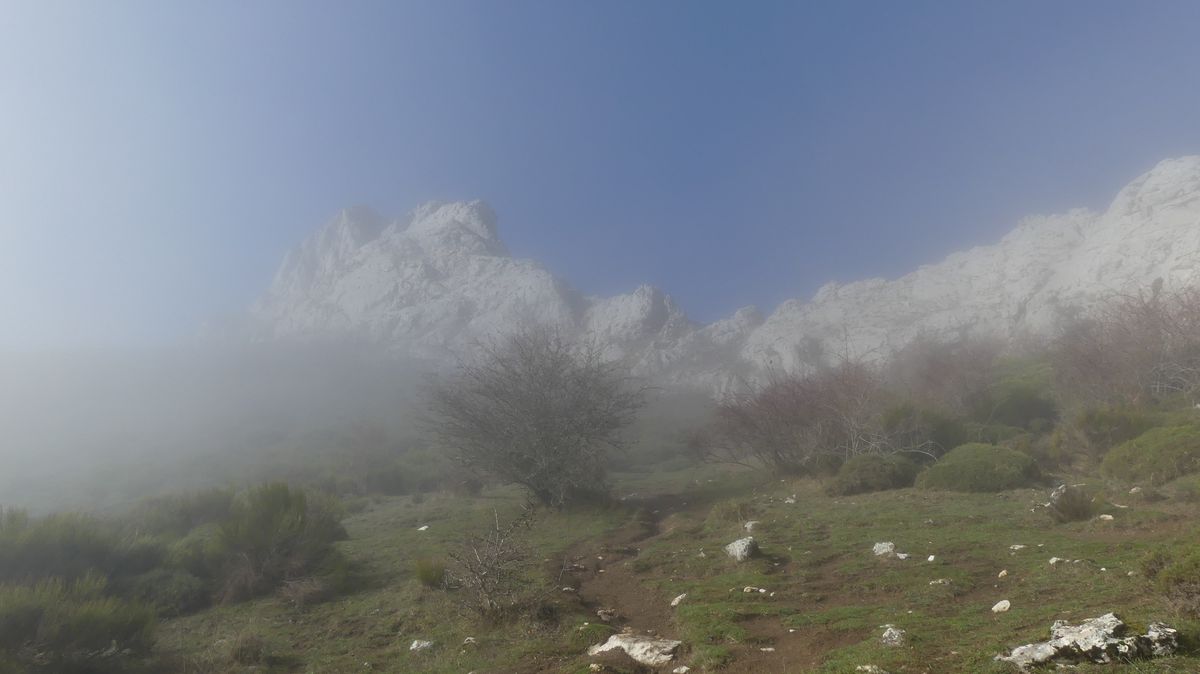 Salimos de Riaño con una espesa niebla que no despejó hasta casi llegar a los 1300 metros de altura. Por lo menos desde allí pudimos ver bastante montaña alrededor, pero del embalse y fondo de valle, no vimos nada.